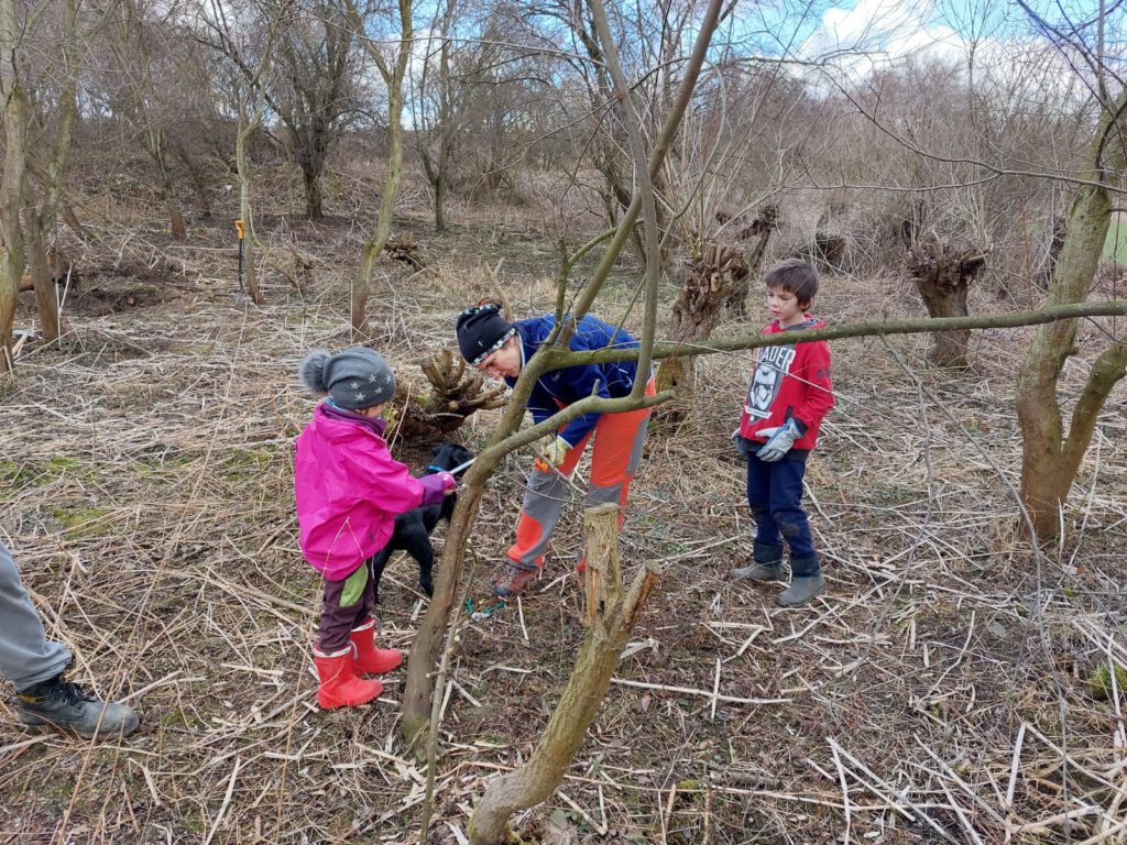 Na vrbách, které jsme minulý rok prořezali, jsme tento rok mohli sklidit trochu proutí. Zjistili jsme, že už jsou některé vrby ve špatném stavu a proto jsme zkusili vedle nich do země zasadit proutky, zda se uchytí. Doufáme, že vyrostou nové vrby.