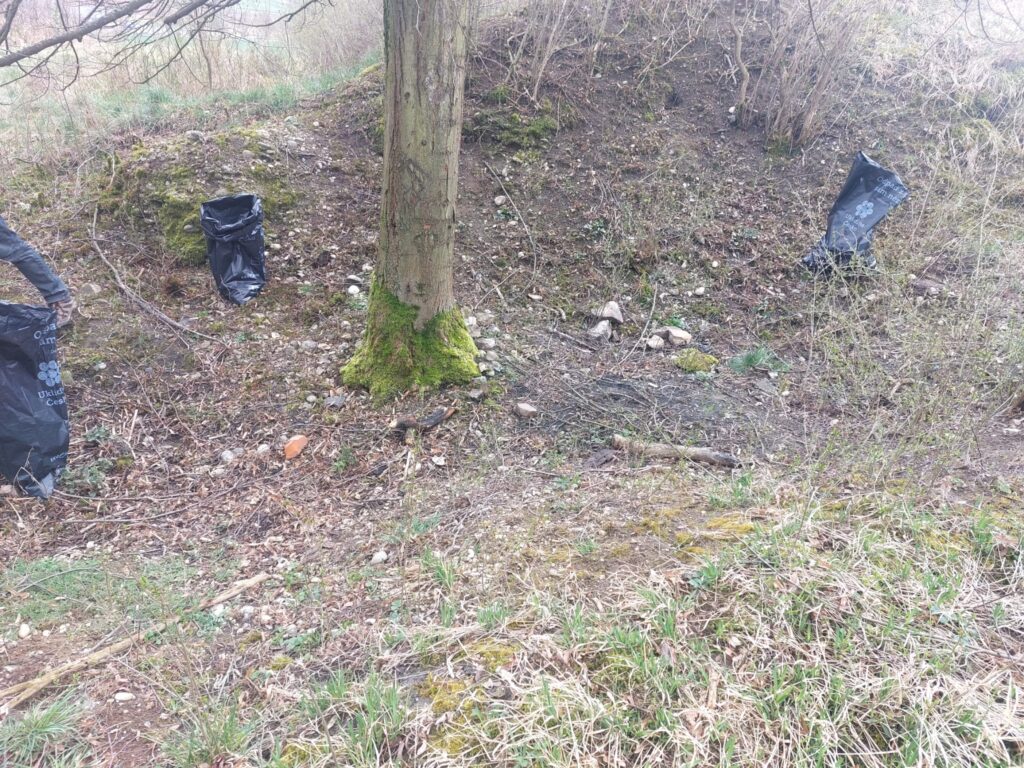 Úklid jsme zaměřili na místo zvané „Skalka“. Zdejší ohniště uprostřed malého lesíku krytého prudkým svahem láká k posezení. Bohužel i k odhazování odpadků. Nejlépe situaci ukazují dvě dvojice fotek „před“ a „po“: